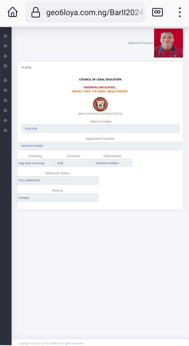 I’m Godwin, a law graduate from the prestigious faculty of Law, Kogi State University, Anyigba, Kogi State, Nigeria. I graduated in the year 2023. I finished with Second Class (Lower division). I applied for the Nigerian Law school, a year program, which would qualify me to seat for the Nigerian Bar examination, after which I will be call to the Nigerian Bar as a Barrister and Solicitor of the Supreme Court of Nigeria.