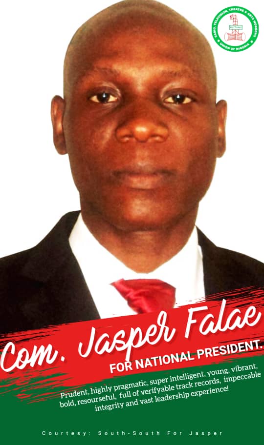 COMRADE. JASPER TAIWO FALAE IS A PASSIONATE MEMBER OF RADIO TELEVISION THEATRE AND ART WORKERS UNION OF NIGERIA (RATTAWU). HE IS CONTESTING FOR THE POST OF NATIONAL PRESIDENT OF RATTAWU.